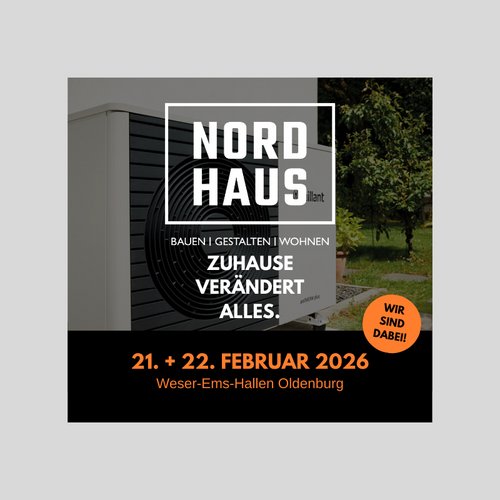 Wir von BC Bieder-Haustechnik GmbH sind als Aussteller auf der NORDHAUS 2026 in Oldenburg mit dabei und zeigen Ihnen, wie moderne Heizungs- und Sanitärlösungen, effiziente Energiesysteme und innovative Haustechnik Ihr Zuhause fit für die Zukunft machen.